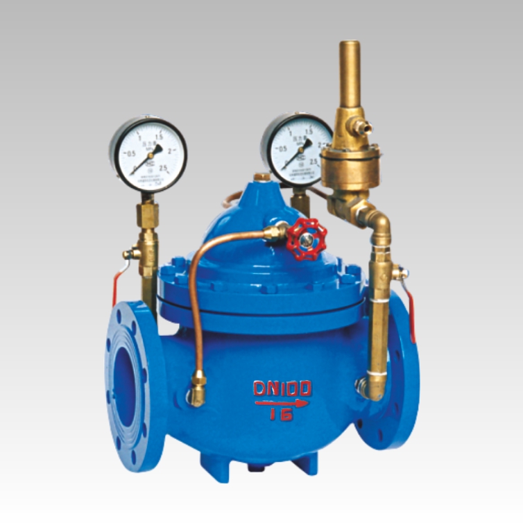 800X壓差旁通平衡閥由主閥,壓差控制導(dǎo)閥、針閥、球閥、微形過(guò)濾器和壓力表組成水力控制接管系統(tǒng)。通過(guò)專門設(shè)計(jì)的導(dǎo)閥控制室,對(duì)壓力變化信號(hào)進(jìn)行比較,輸出主閥開(kāi)度信號(hào),控制主閥開(kāi)度,從而控制主閥的進(jìn)出口壓差在設(shè)定值上。其工作原理是,當(dāng)主閥進(jìn)出口間壓差變化時(shí),接管A與接管B間壓差發(fā)生變化,此變導(dǎo)閥的開(kāi)度。壓差大時(shí)導(dǎo)閥開(kāi)度大,控制室通過(guò)C管的下泄水量增大,主閥控制室壓力下降,主閥開(kāi)度增大,主閥進(jìn)出口間壓差變小。反之,若主閥進(jìn)出口間壓差變小,則導(dǎo)閥開(kāi)度變小,主閥控制室壓力上升,推動(dòng)主閥開(kāi)度減小而使主閥壓差增大。這種負(fù)反饋?zhàn)饔檬怪鏖y進(jìn)出口間壓差穩(wěn)定在設(shè)定值上。設(shè)定針閥開(kāi)度和導(dǎo)閥彈簧壓力可設(shè)定主閥進(jìn)出口間壓差。本產(chǎn)品利用水力自力控制,不需要其它裝置和能源,保養(yǎng)簡(jiǎn)便,廣泛用于高層建筑、生活區(qū)等供水管網(wǎng)系統(tǒng)及城市供水工程。