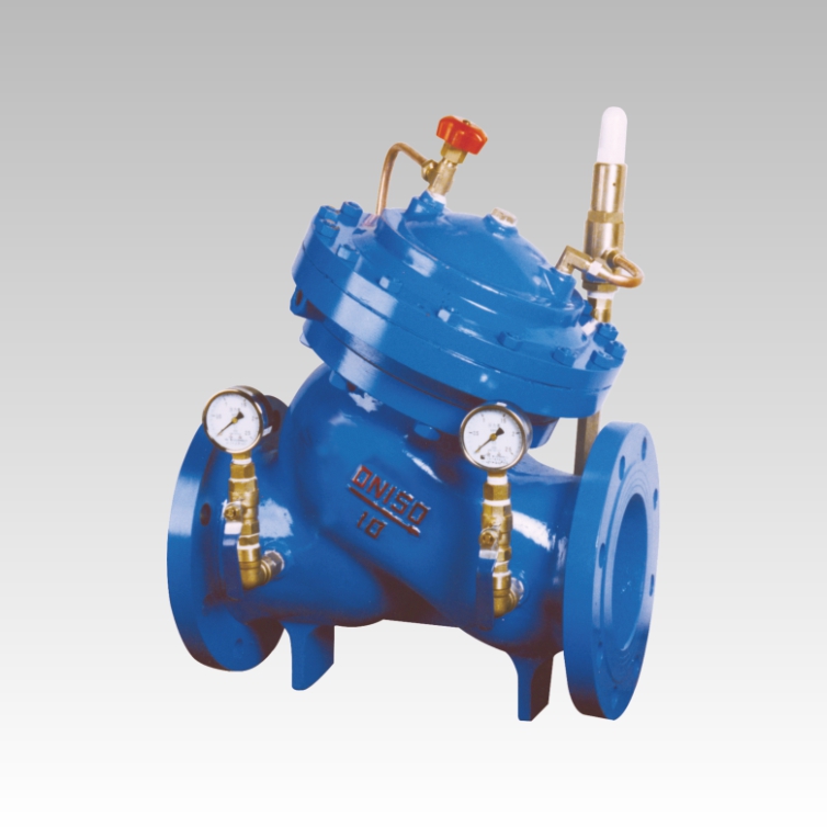 隔膜式可調減壓穩(wěn)壓閥是安裝于高層建筑給排水系統(tǒng)管道上,將進口壓力減至某一需要出口壓力的特種閥門,該閥門依靠本身能量使出口壓力保持穩(wěn)定在設定值,即出口壓力不因進口壓力及流量的變化而變化,并且閥門控制系統(tǒng)的進口處裝有一個自清潔濾網(wǎng),利用流體特性,使比重較大,直徑較大的懸浮顆粒不會進入控制系統(tǒng),確保系統(tǒng)循環(huán)暢通無阻,使閥門能安全可靠地運行。系統(tǒng)動作靈敏,使用壽命長。