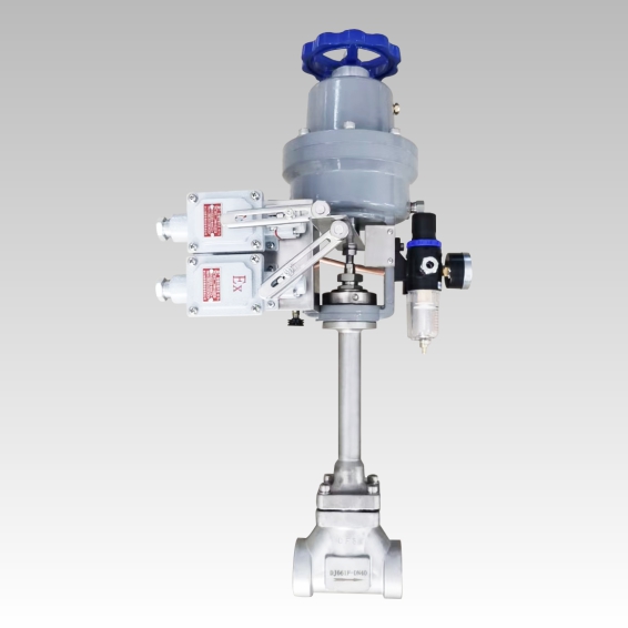 氣動低溫切斷閥在氣缸充入氮氣或者壓縮空氣,推動活塞上升帶動閥桿開啟閥門,關(guān)閉時釋放氣缸內(nèi)氣體, 活塞在彈簧的作用力下推動閥桿與閥瓣向下運動,密封件壓緊閥座,閥門關(guān)閉;本產(chǎn)品適用于低溫貯槽、槽車和罐車上切斷和流通介質(zhì),并在出現(xiàn)故障時能及時切斷介質(zhì)。這種新型閥門具有結(jié)構(gòu)簡單、體積小、重量輕、密封可靠、操作方便、啟閉靈活、適用性廣等優(yōu)點,廣泛應用于LO2、LN2、LAr、LNG、LHe及其它低溫介質(zhì),具有防火、防靜電、防爆功能。